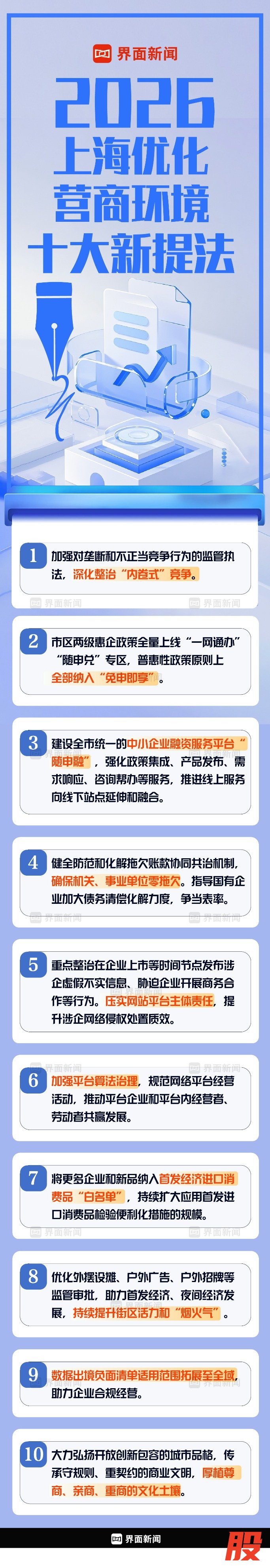 新年首个工作日,《上海市加快打造国际一流营商环境行动方案(2026年)》正式发布,这是上海出台的第九版优化营商环境行动方案(下称9.0版行动方案),该方案围绕四大重点领域,部署了26项具体任务举措。